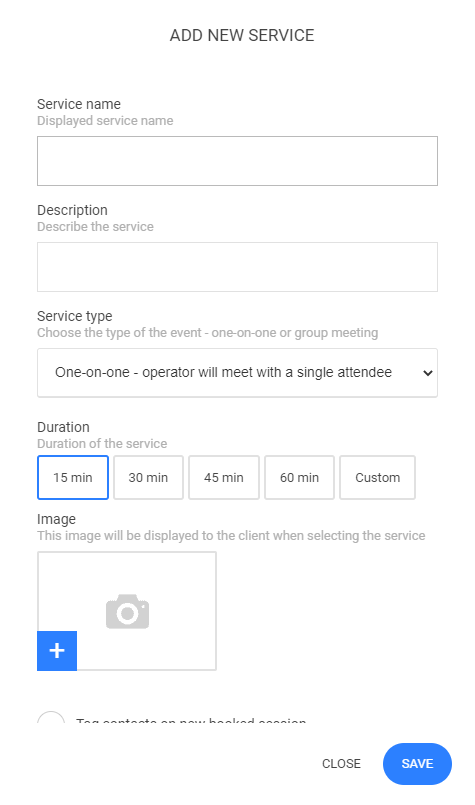 The next step is creating the operators' availability.Select the booking type, whether it will be one to one or a group booking event for multiple users.Then configure: