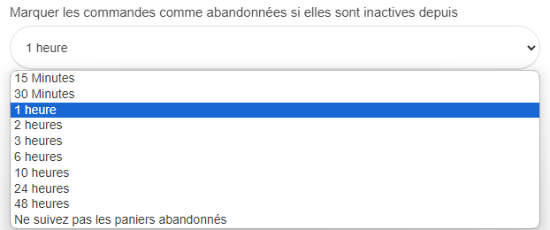 Vous pouvez définir un délai qui détermine le temps d'attente avant que l'automatisation ne démarre après l'abandon du panier par le client. Vous pouvez modifier ce délai si nécessaire à l'avenir.