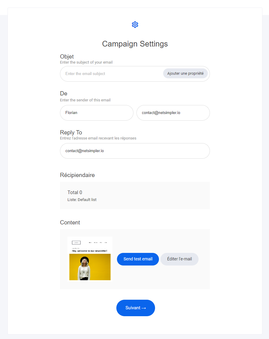 # Campagne d'email