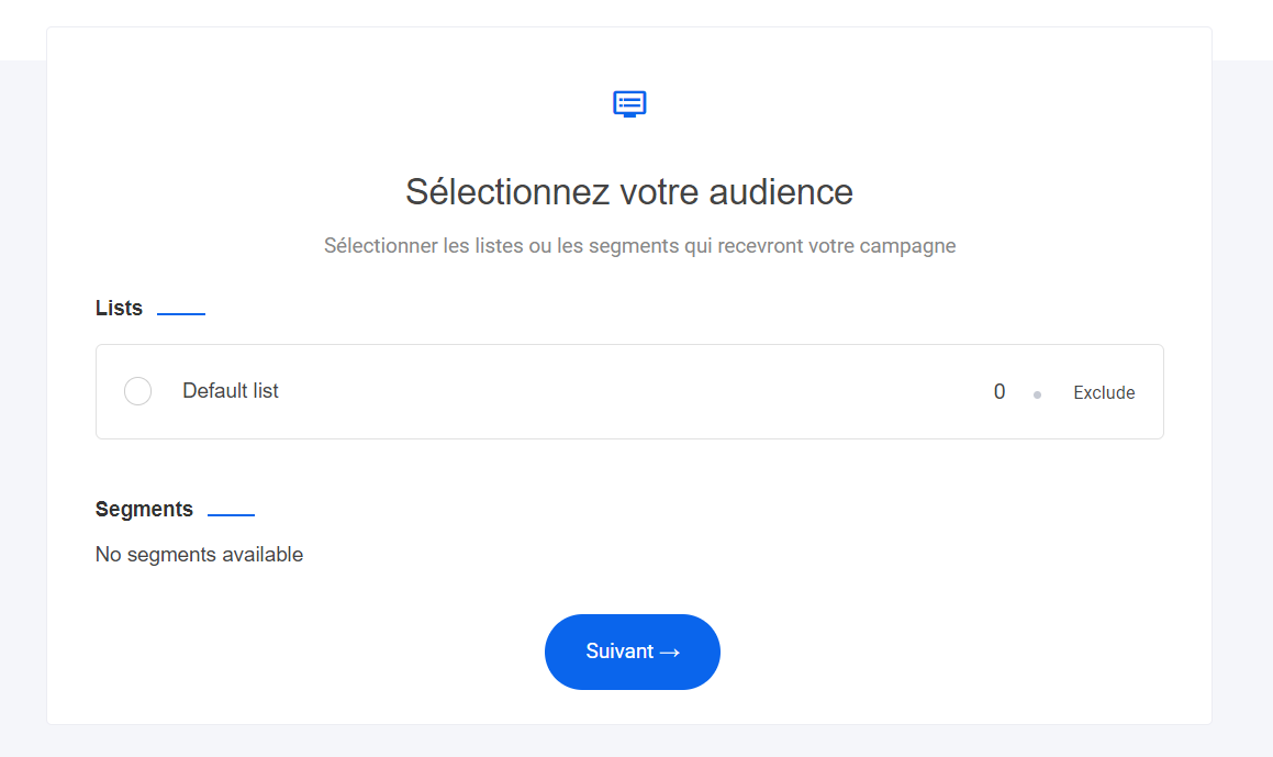 Que vous souhaitiez envoyer un courrier électronique à une liste complète d'abonnés ou à un public segmenté, il vous suffit de le sélectionner et de passer à l'étape suivante.